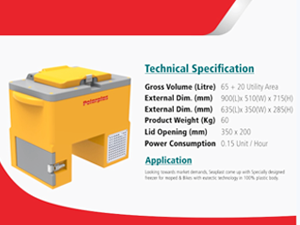 Our Company has wide experience in Refrigeration. We are the Authorised dealer and Supplier of rotational moulded plastic double wall insulated bins and Containers, Plastic body refrigerated freezers and chillers. Our products are used for storage, transportation, logistics, inventory management and across a wide range of end user industries like diaries, Icecream, Seafood, Aquaculture, Meat, Poultry, Pharmaceutical vehicles etc. We are the Authorized south side dealer of seaplast, Polarplas and Cool Box.